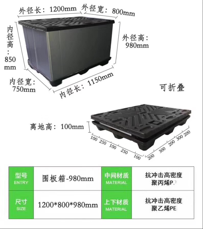 | 1200*800*980圍板箱 | 1200*800*980 | 1T | 4T |